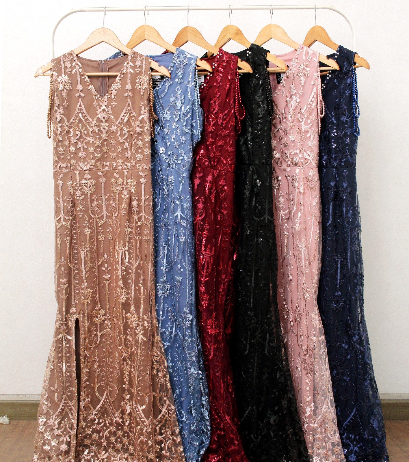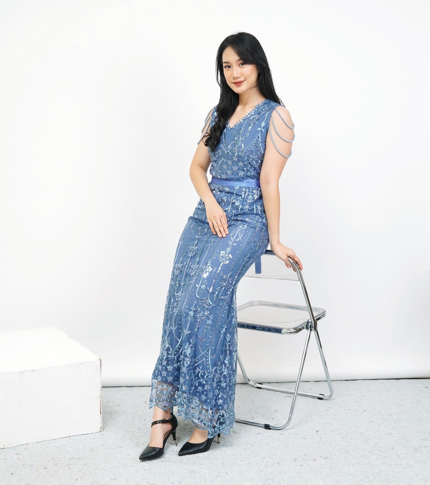 Model Lengan Tangan Buntung dengan variasi 3 rantai muatiara yang mewah.