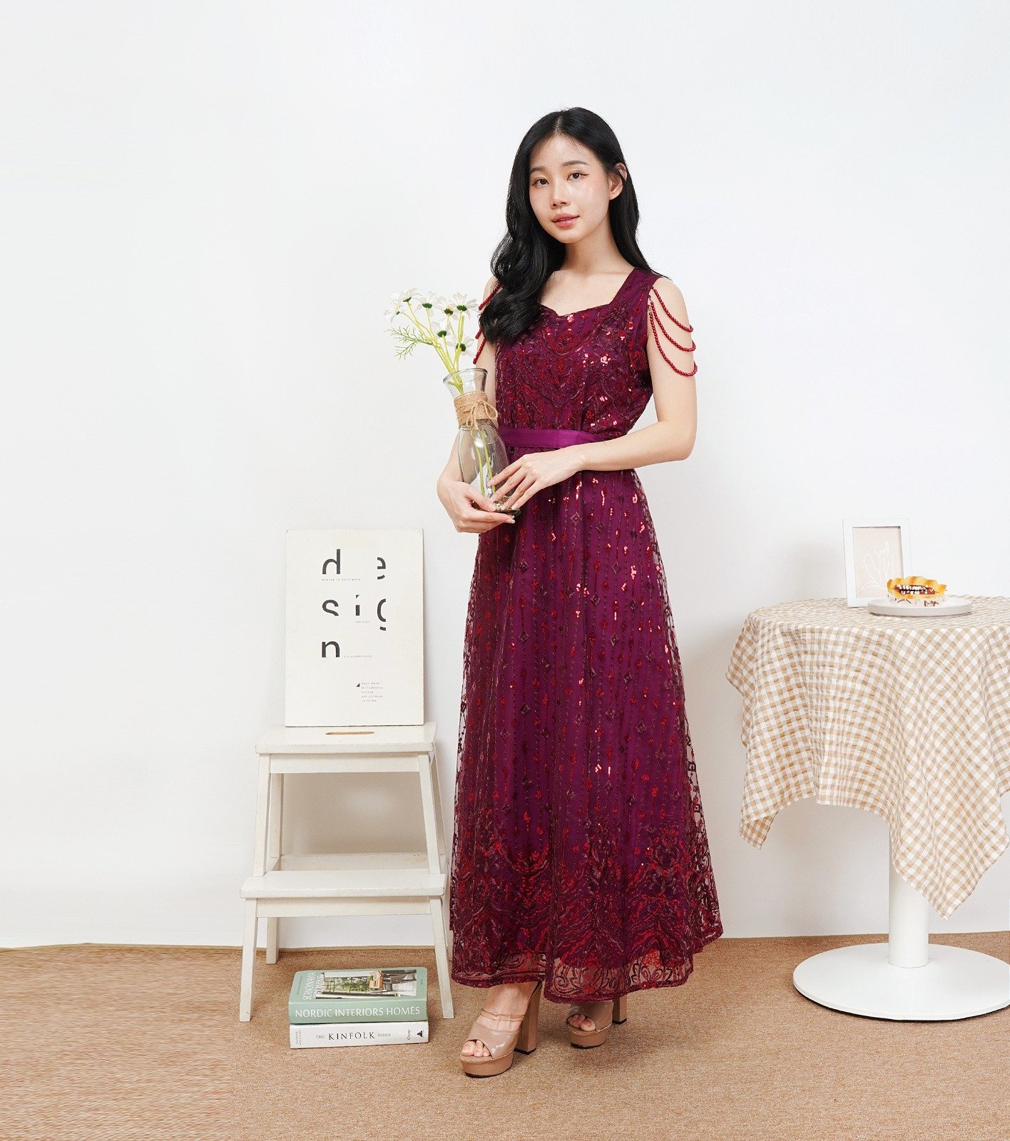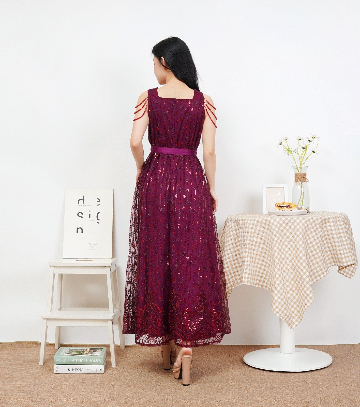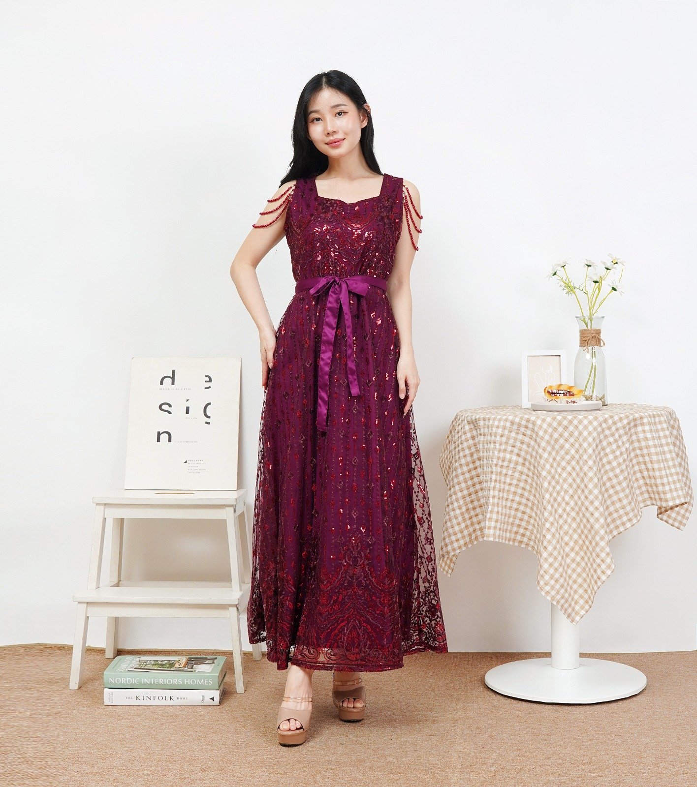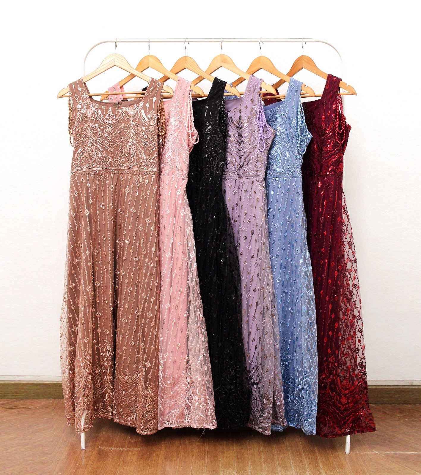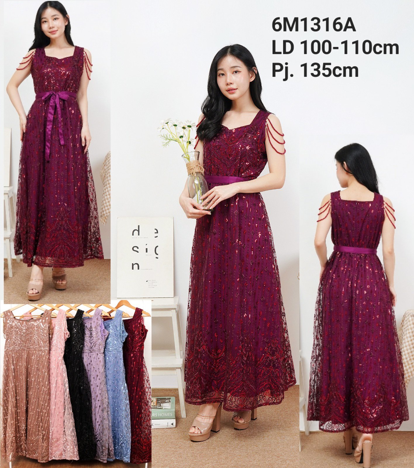 Long Dress Mekar Tulle Lengan Buntung Mutiara.