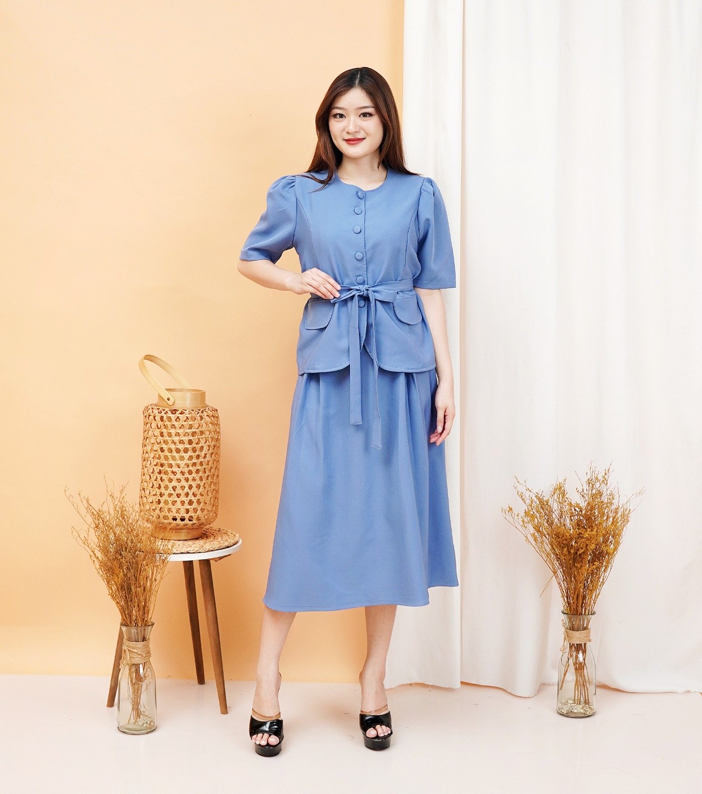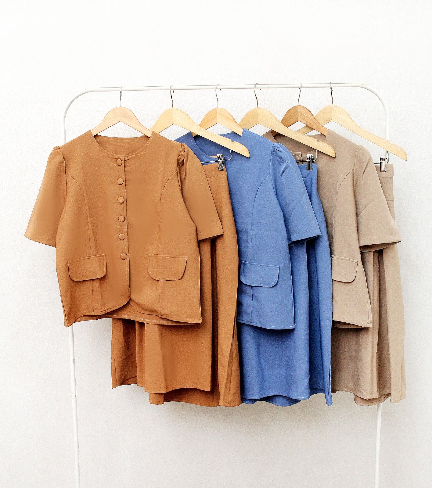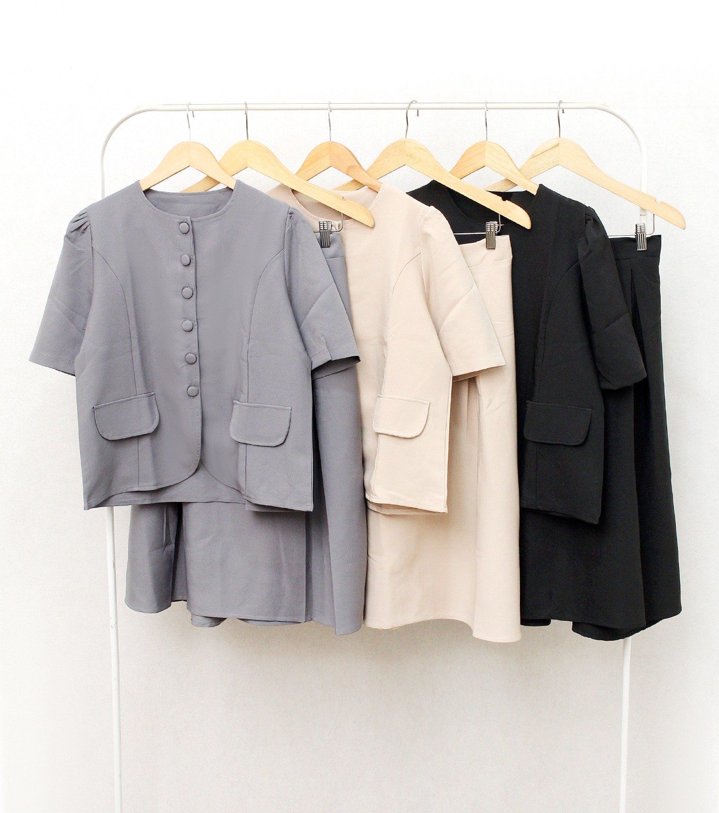 Setelan Atasan Kancing & Rok Mekar Wool.