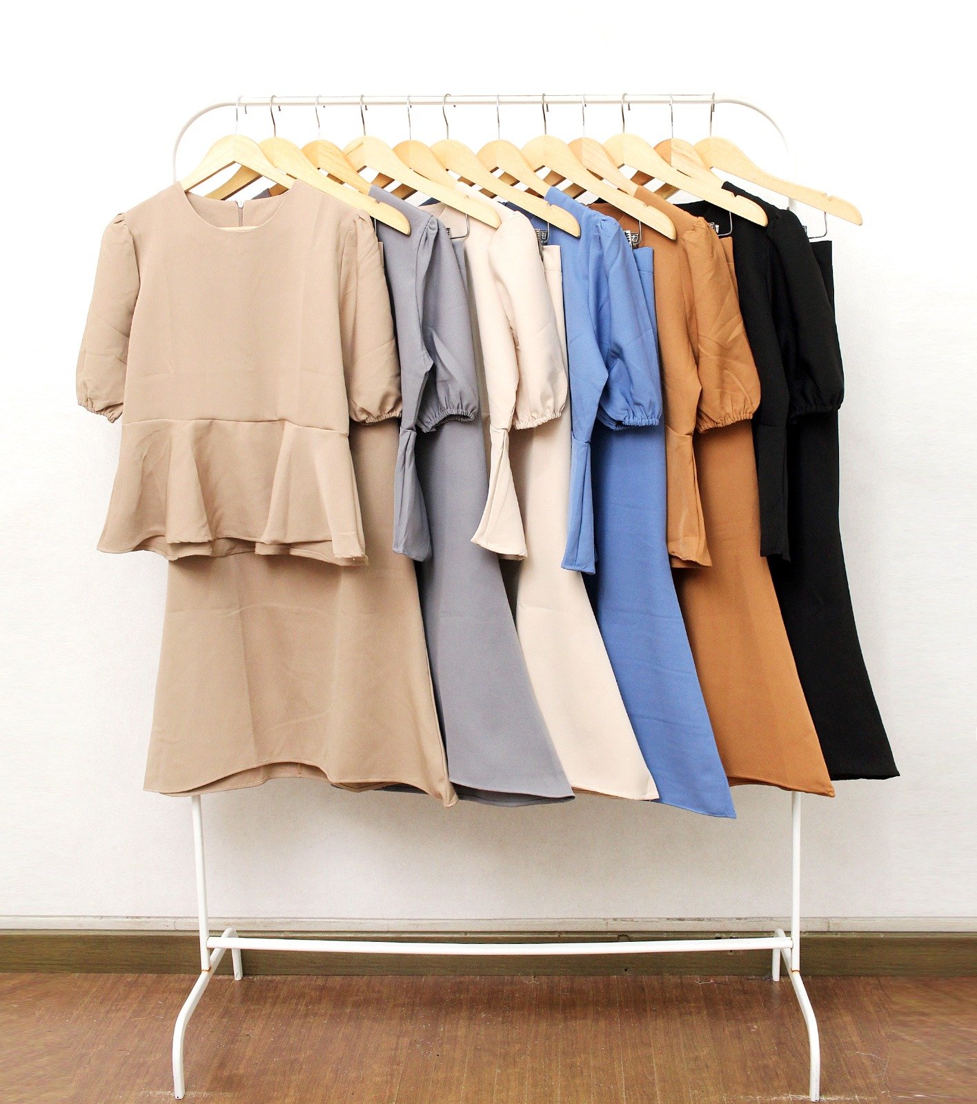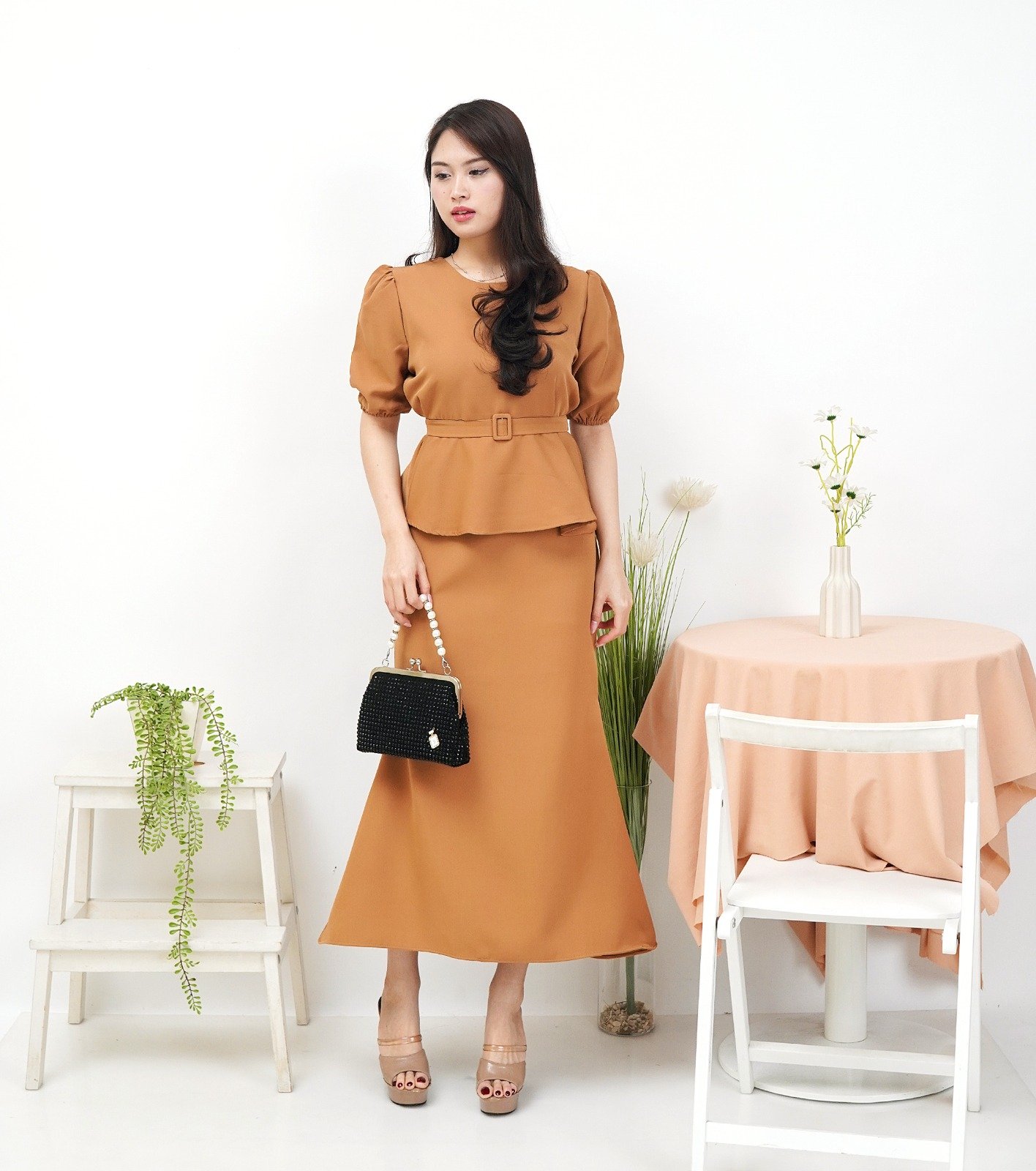 Setelan Atasan Peplum & Rok Mekar Scuba.