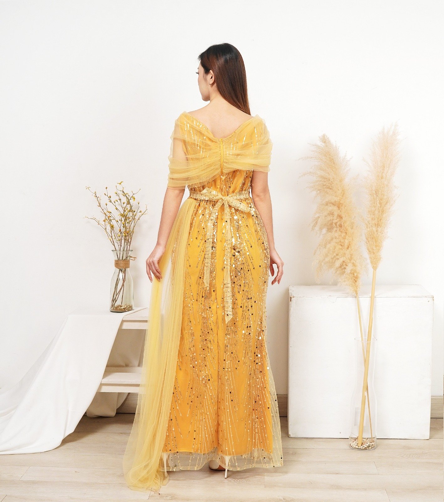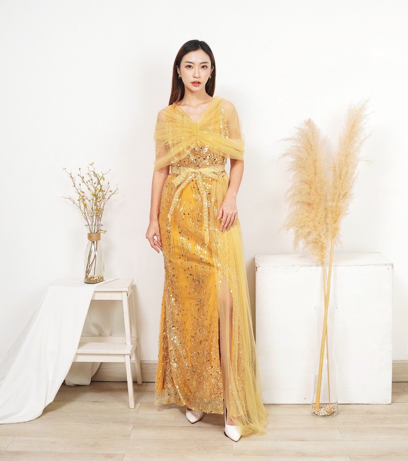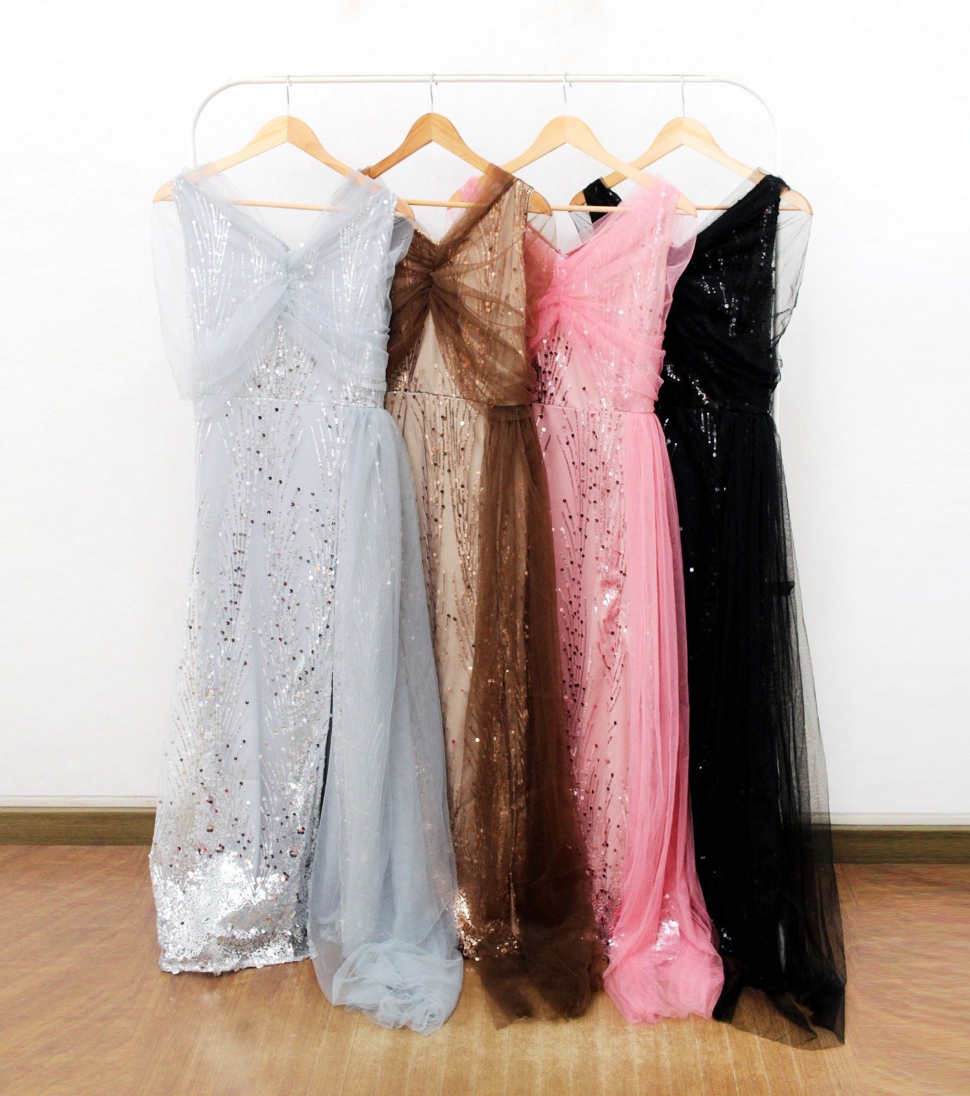 Long Dress Kombinasi Tangan Buntung Tulle & Tille Sabrina.