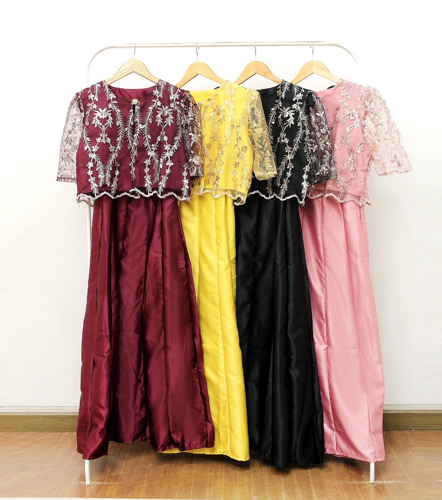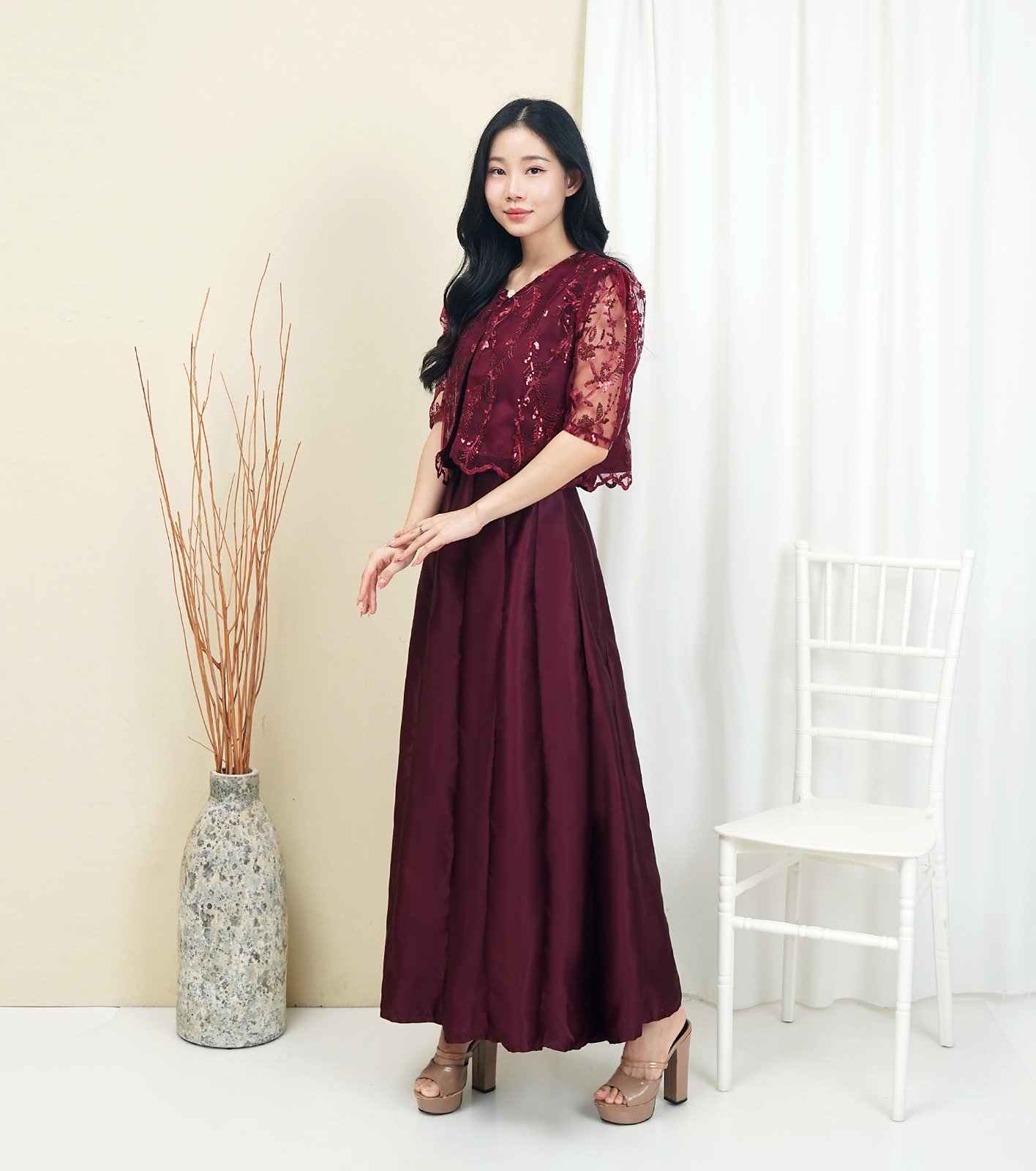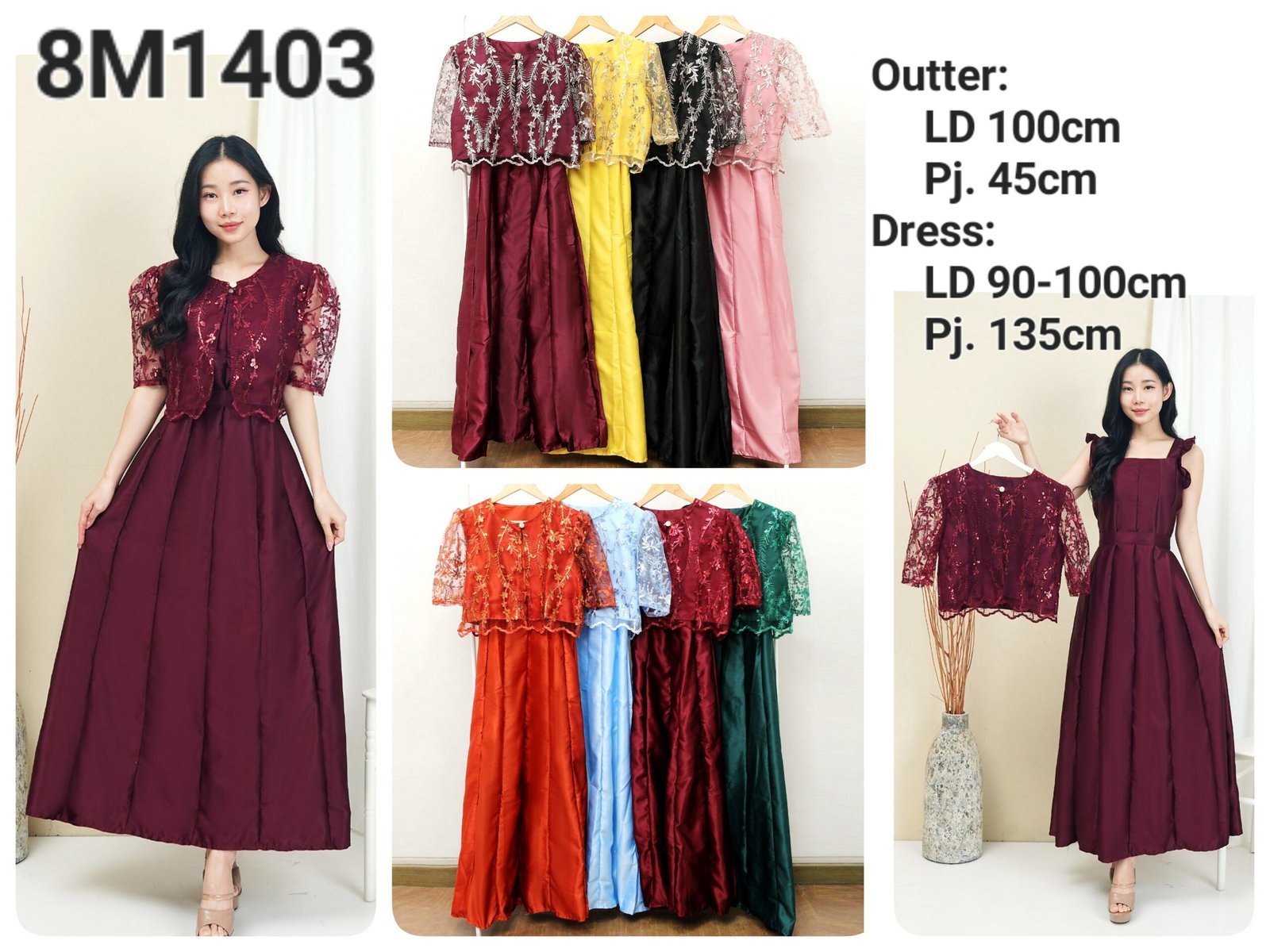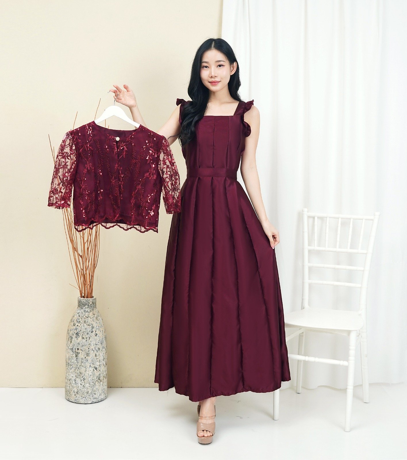 Setelan Dress Maxi Tanktop Satin + Outter Crop Tulle.