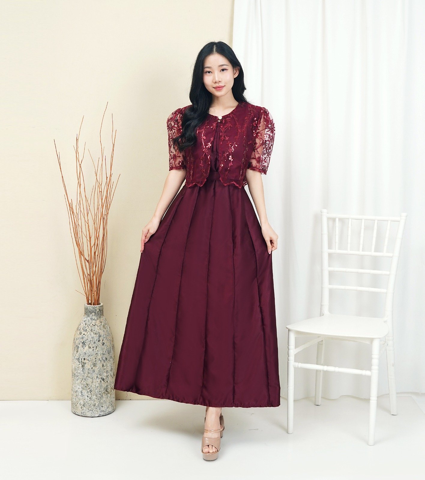 Panjang dress hingga menyentuh mata kaki (maxi).